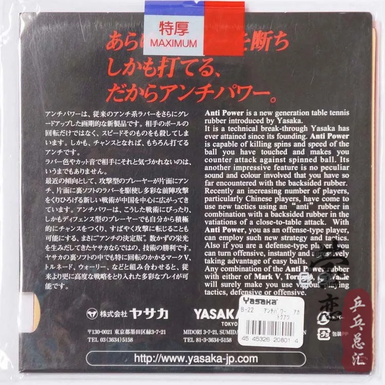 Best Quality Original Yasaka Anti Power B-22 table tennis rubber Anti Power table tennis rackets racquet sports